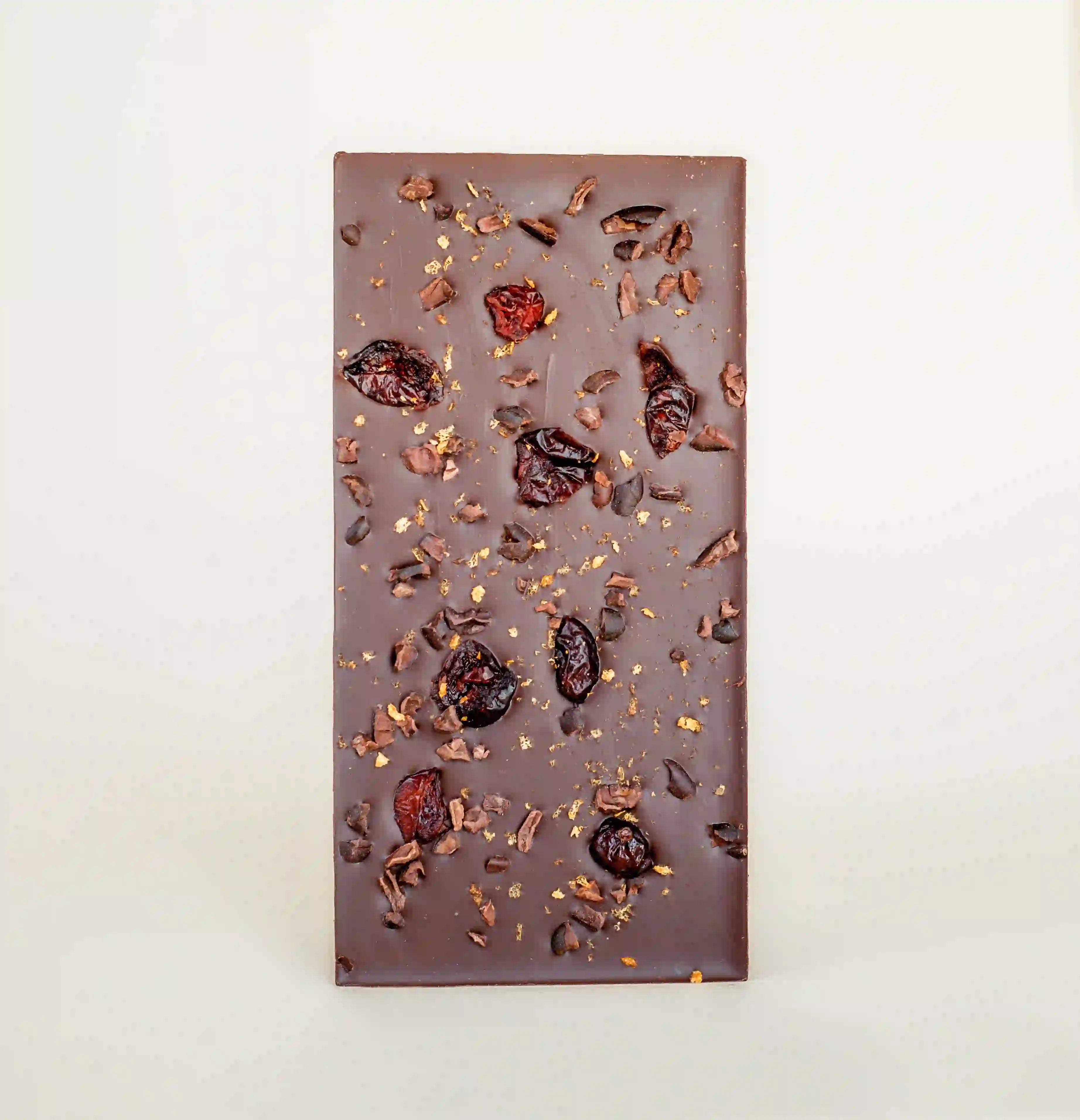 75% Haiti dark chocolate with dried cranberries, orange zest & cacao nibs!