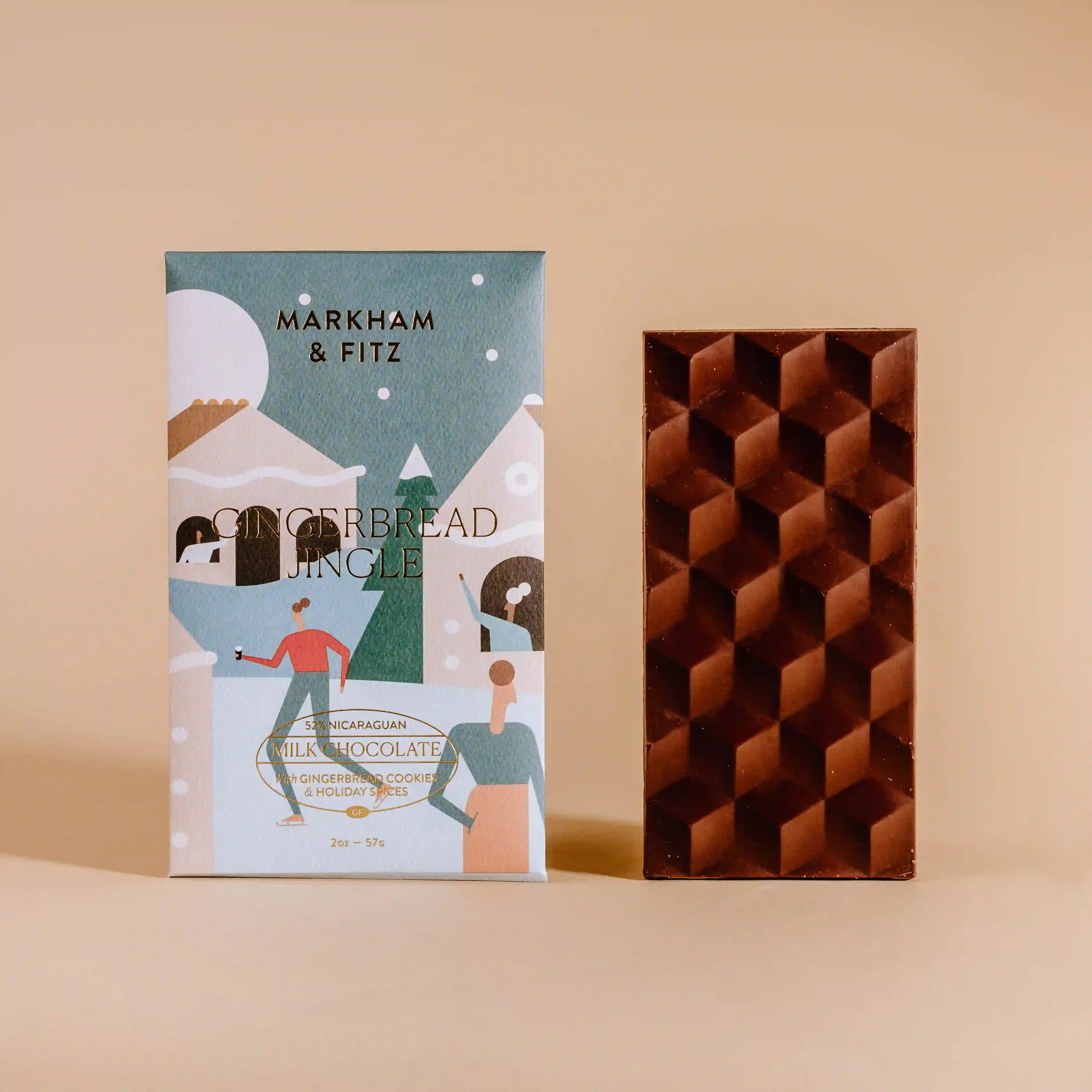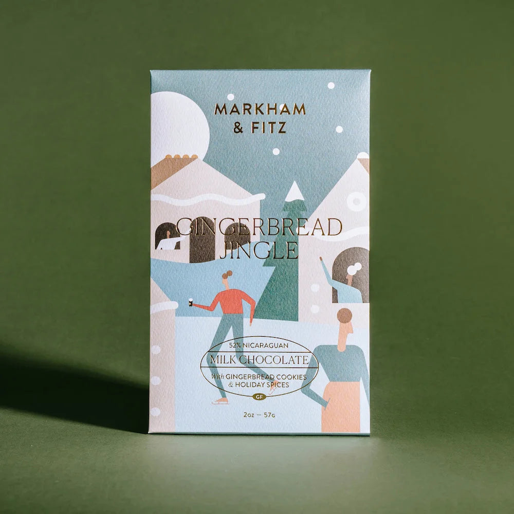 52% Dark Milk Chocolate with crushed gingerbread cookies & spices. A milk chocolate blended with crushed gingerbread cookies to inspire the holiday baker in all of us.